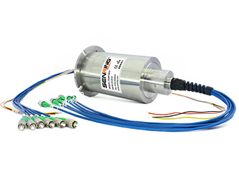 6路光纖(支持單模/多模),同時能傳輸1路光纖和1~72路電信號通路,適用于需要360度無限制的,連續(xù)或斷續(xù)旋轉(zhuǎn), 同時又需要從固定位置到旋轉(zhuǎn)位置傳送大容量數(shù)據(jù)、信號的場所,能改善機械性能,簡化系統(tǒng)操作,避免因活動關(guān)節(jié)的旋轉(zhuǎn)對光纖造成損害。