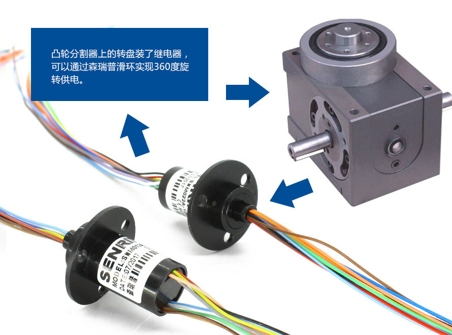不同品牌的凸輪分割器功能可能會有所不同,森瑞普有多種規(guī)格的導電滑環(huán),有空心的過孔式,也有實心的帽式,可以選法蘭安裝。比如有個客戶,他在凸輪分割器上裝了一個轉(zhuǎn)盤,由于轉(zhuǎn)動部位沒有軸,于是他就看中了森瑞普的實心帶法蘭安裝的。