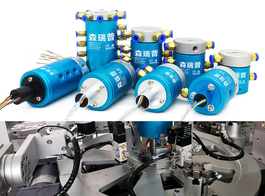 那么該客戶的情況,他應(yīng)該選用哪種類型的氣滑環(huán)呢?通過與客戶的溝通,他的分割器上只有4個(gè)氣缸,也就是說只要滑環(huán)能實(shí)現(xiàn)360度旋轉(zhuǎn)通氣就可以了,不需要導(dǎo)電或傳輸控制信號(hào)等功能,那么選擇森瑞普8路氣滑環(huán),也就是8進(jìn)8出規(guī)格的氣動(dòng)旋轉(zhuǎn)接頭就可以了。